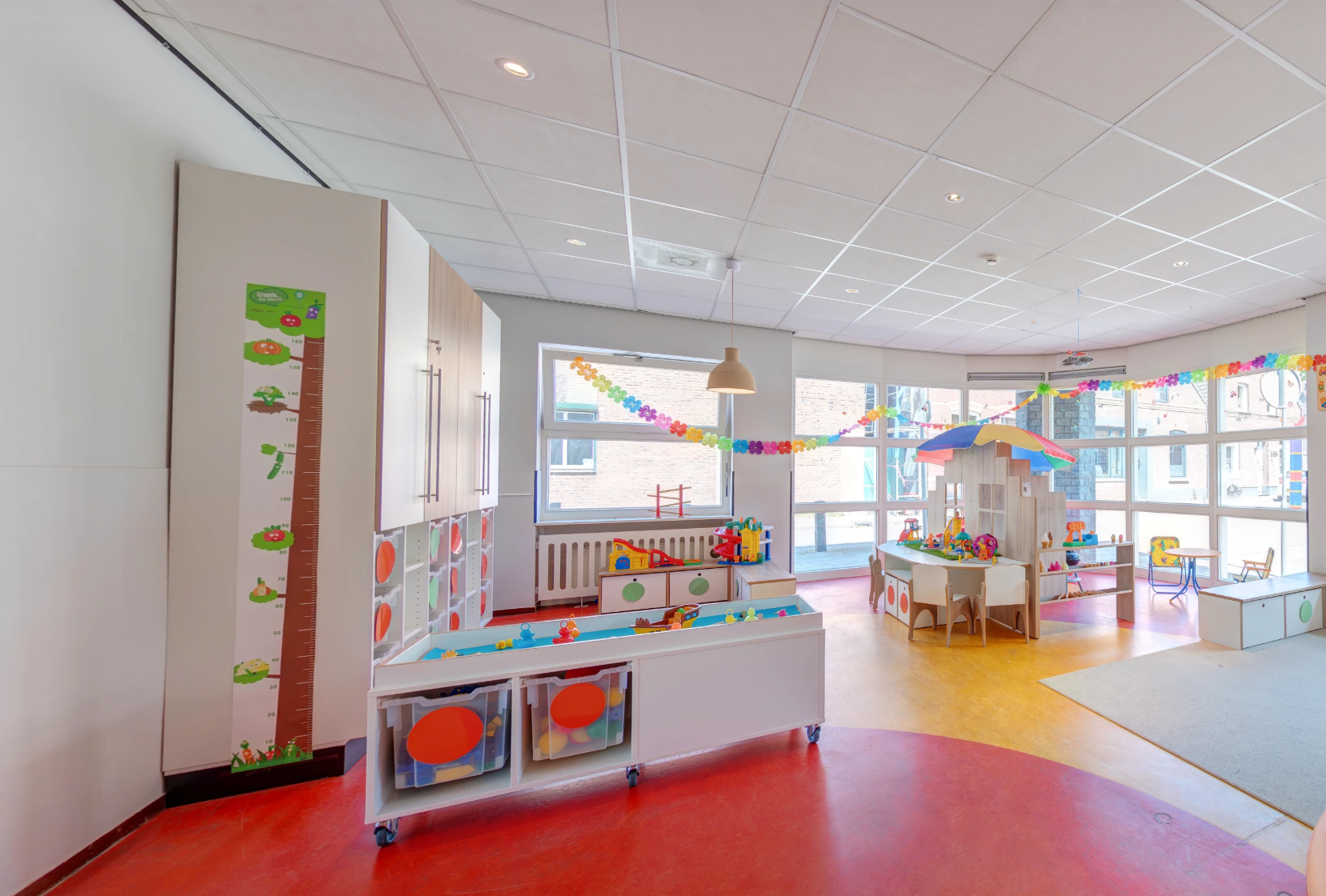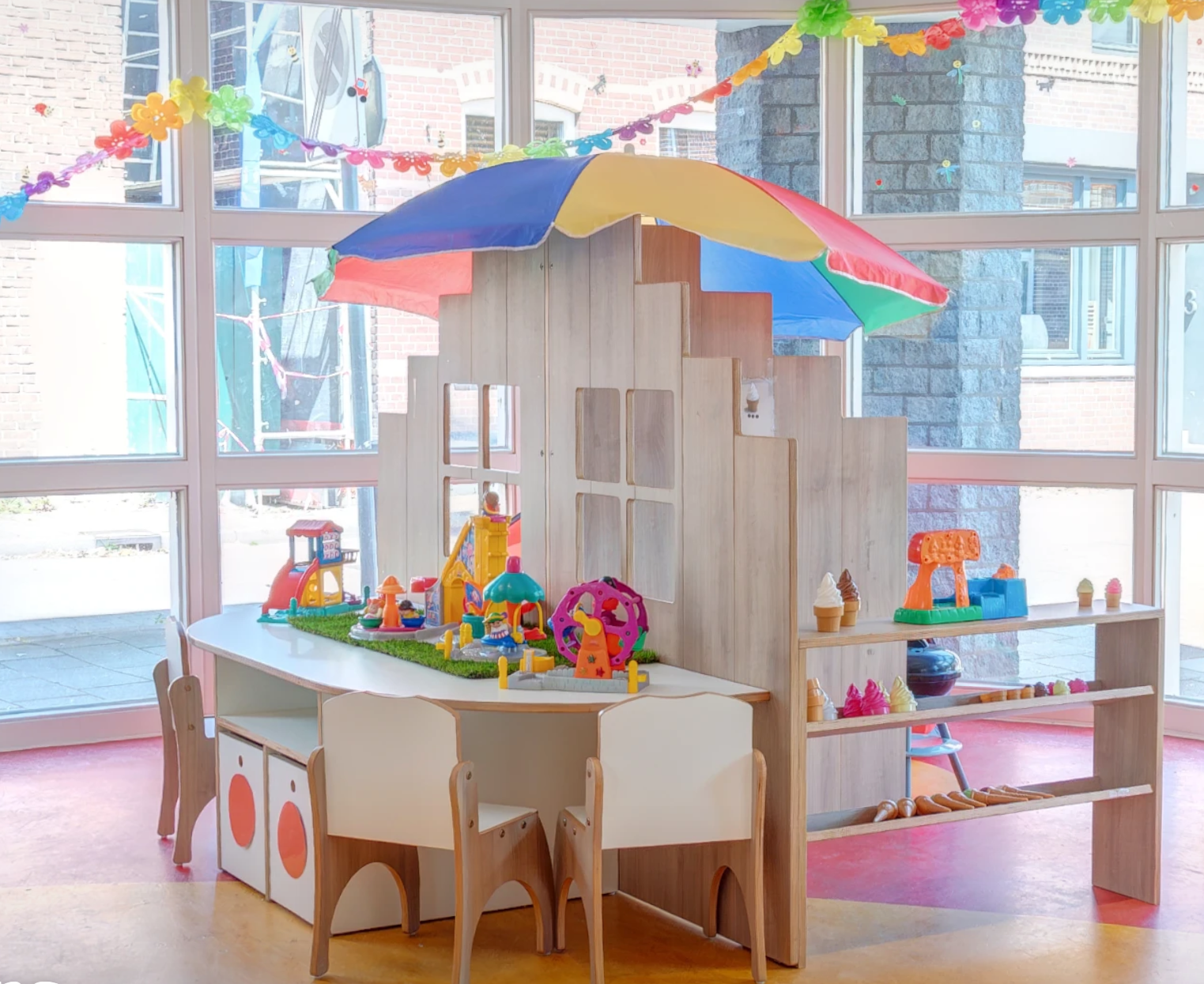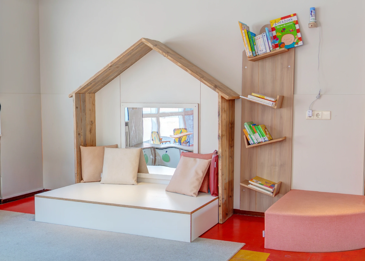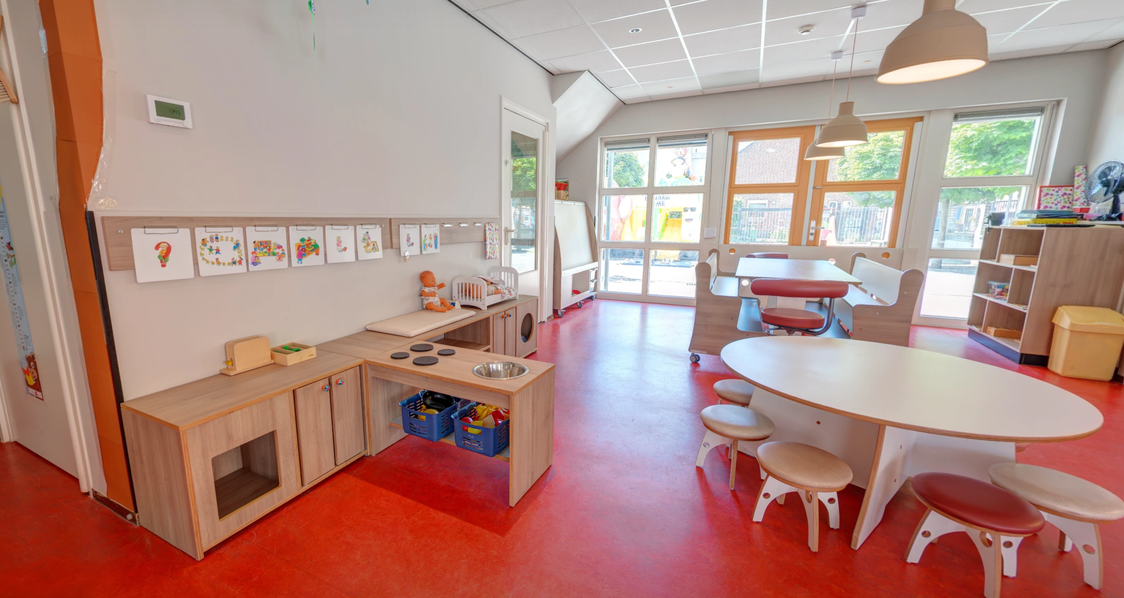 - Groepsruimte met verschillende speelhoeken en een fijne buitenspeelplaats.