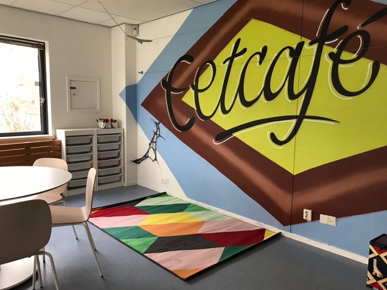 - Veel mooie ruimtes, waaronder een theater- en huishoek, een chillroom met computer, een atelier voor creatieve activiteiten en een eetcafé.