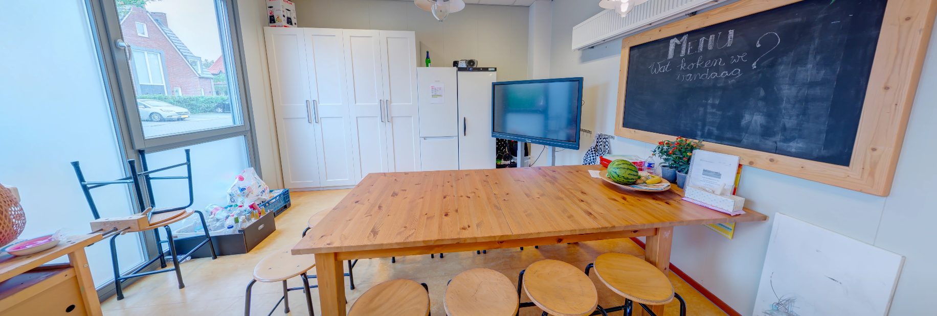 - Een bso-groep met in leeftijd oplopende groep verspreid over 2 ruimtes ingedeeld naar leeftijden. En nieuw is onze super gave Teenz groep met kookstudio, chillruimte, tut en frut en crealab.