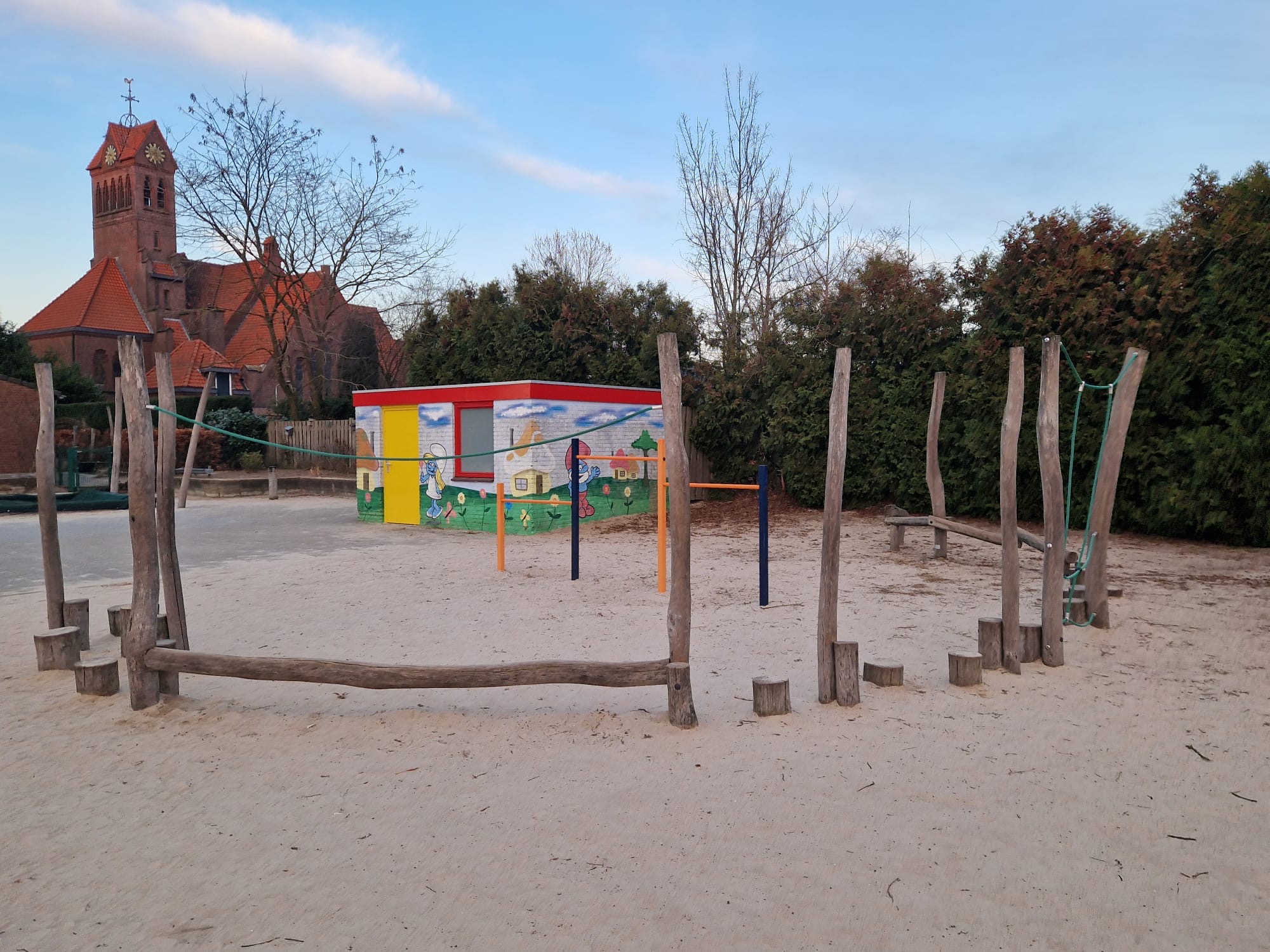 - We maken gebruik van de speelplaats van school. Een gedeelte hiervan is ingericht volgens het principe 'natuurlijk buitenspelen'.