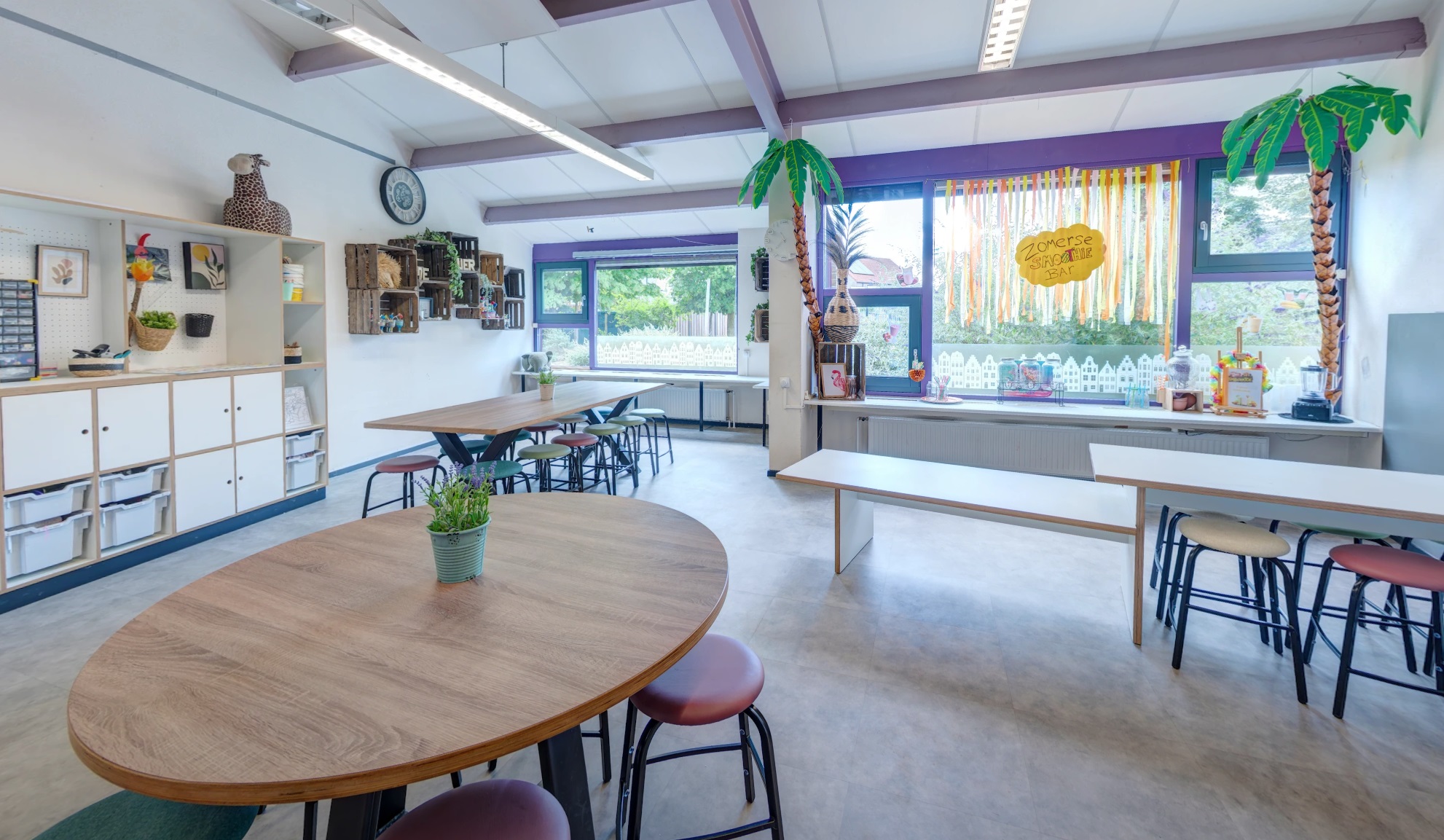 - Uitdagende ruimte met o.a. een huishoek, een bouwhoek, een houtbewerkingshoek, een lounge hoek, make-up hoek, een knutselhoek en tal van leuke materialen.