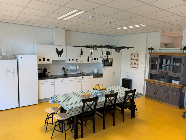 - Gelegen in een groene omgeving (vlakbij weiland en bos), dus we trekken er vaak op uit!