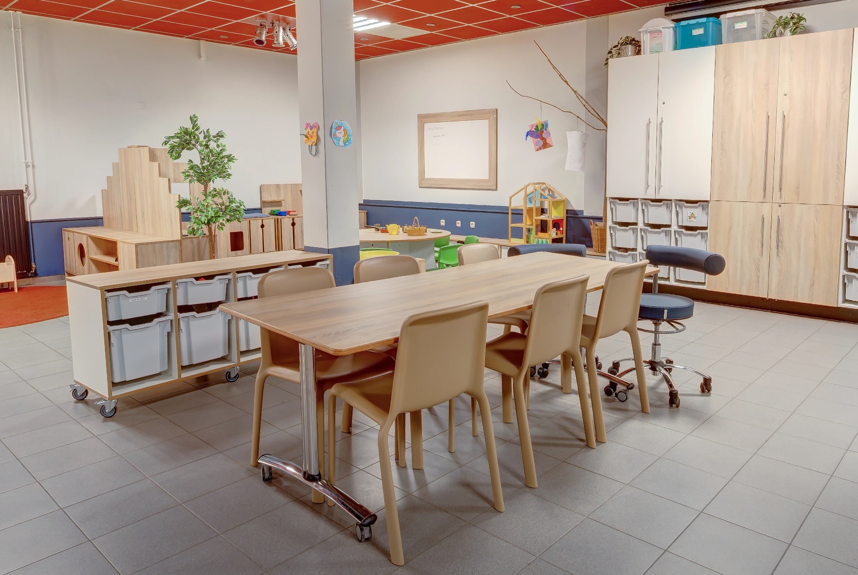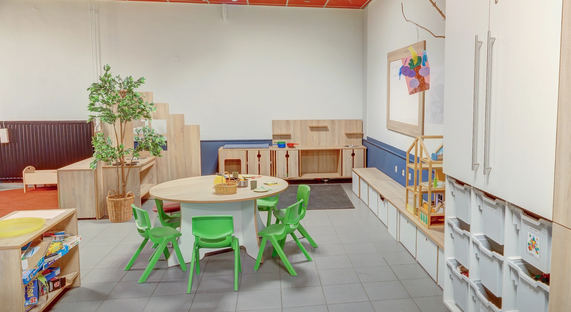 - Diverse hoeken, zoals een chill pit, bouwhoek en een huishoek.