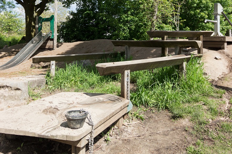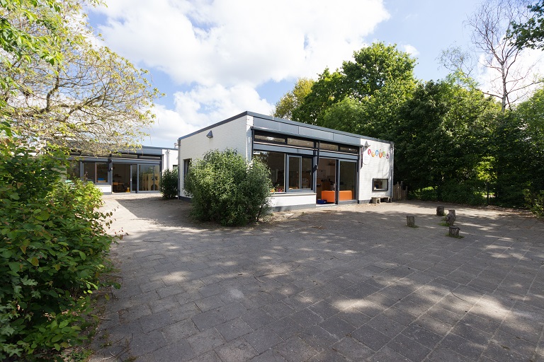 - Grote buitenruimte met zandbak, schommels, voetbalveld, bosjes om hutten te bouwen en rond te struinen.