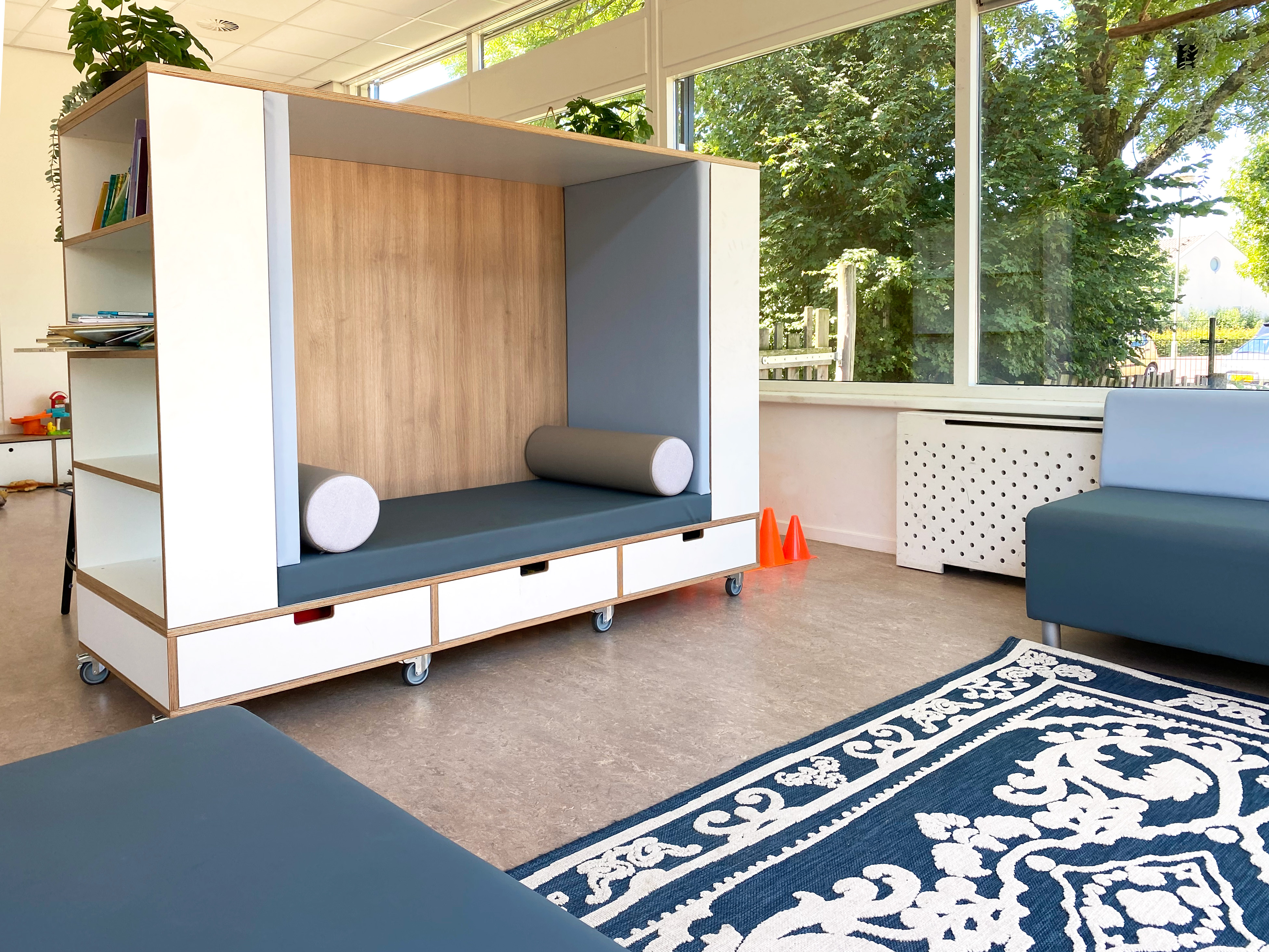 - Knusse hoekjes zoals een knutselhoek, computerhoek en een poppenhoek.