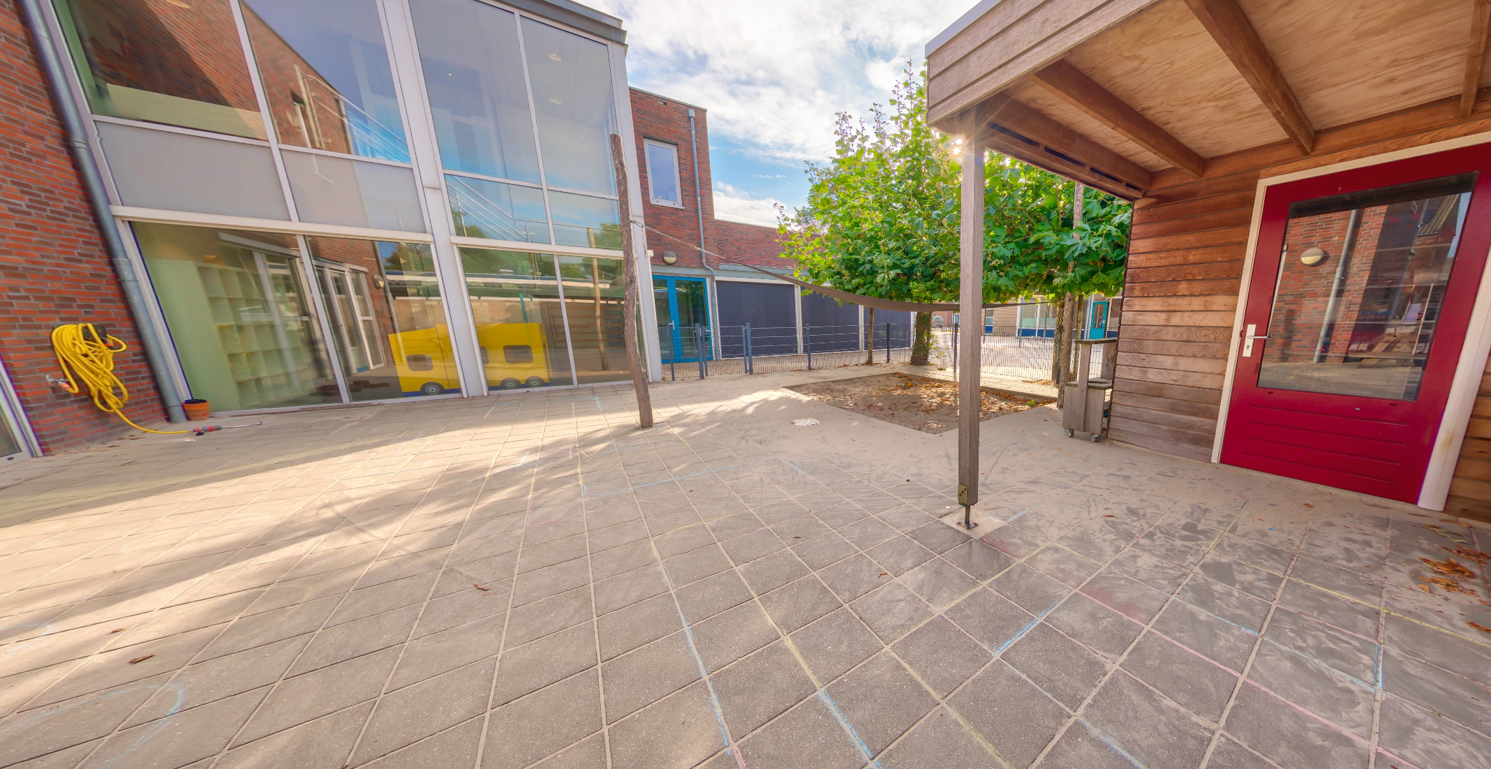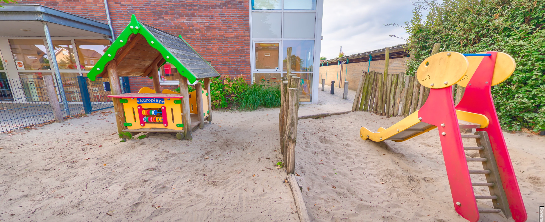 - Fijne buitenruimte met verschillende speeltoestellen.