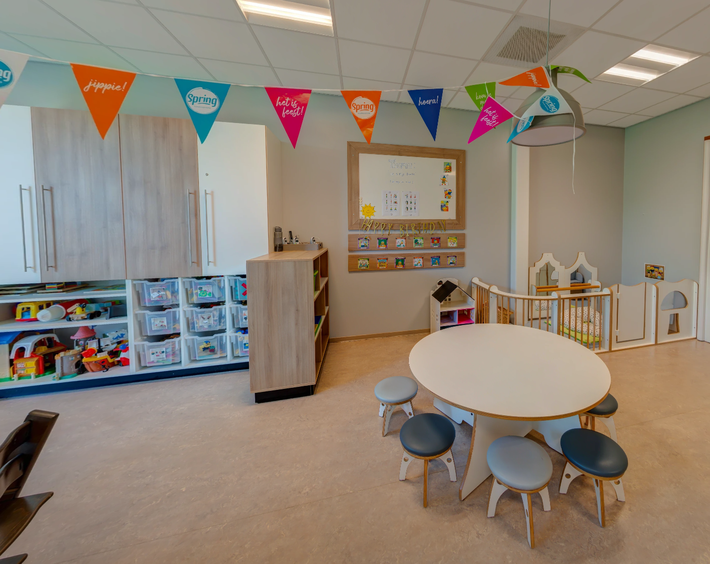 Iedere leeftijd vraagt om een andere benadering. Onze opvang past zich hier op aan. Zo heeft de dagindeling van de allerkleinsten rust en een duidelijke structuur, die ruimte biedt voor aanpassing op het ritme van je baby. Wordt je kind al wat groter, dan gaat het meer uitdaging zoeken en bieden wij met speciale activiteiten (gelijk aan onze peuteropvang) een goede voorbereiding op de basisschool. Spelen en ontwikkelen gebeurt bij ons áltijd aan de hand van Spring Actief of een VVE-methode.