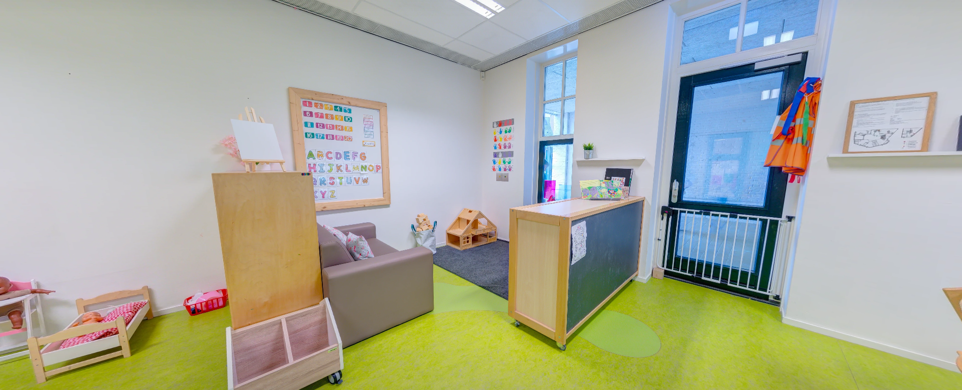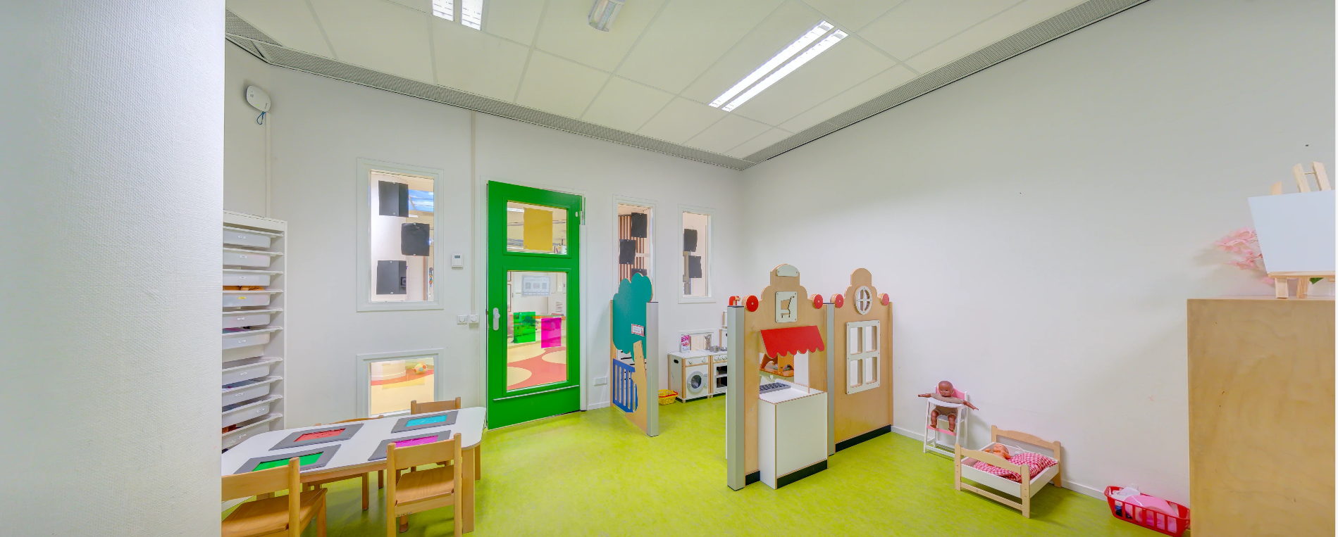 • Gezellige groepsruimtes met 'daglicht-wolkenplafonds' en een grote hal voor gezamenlijke activiteiten.