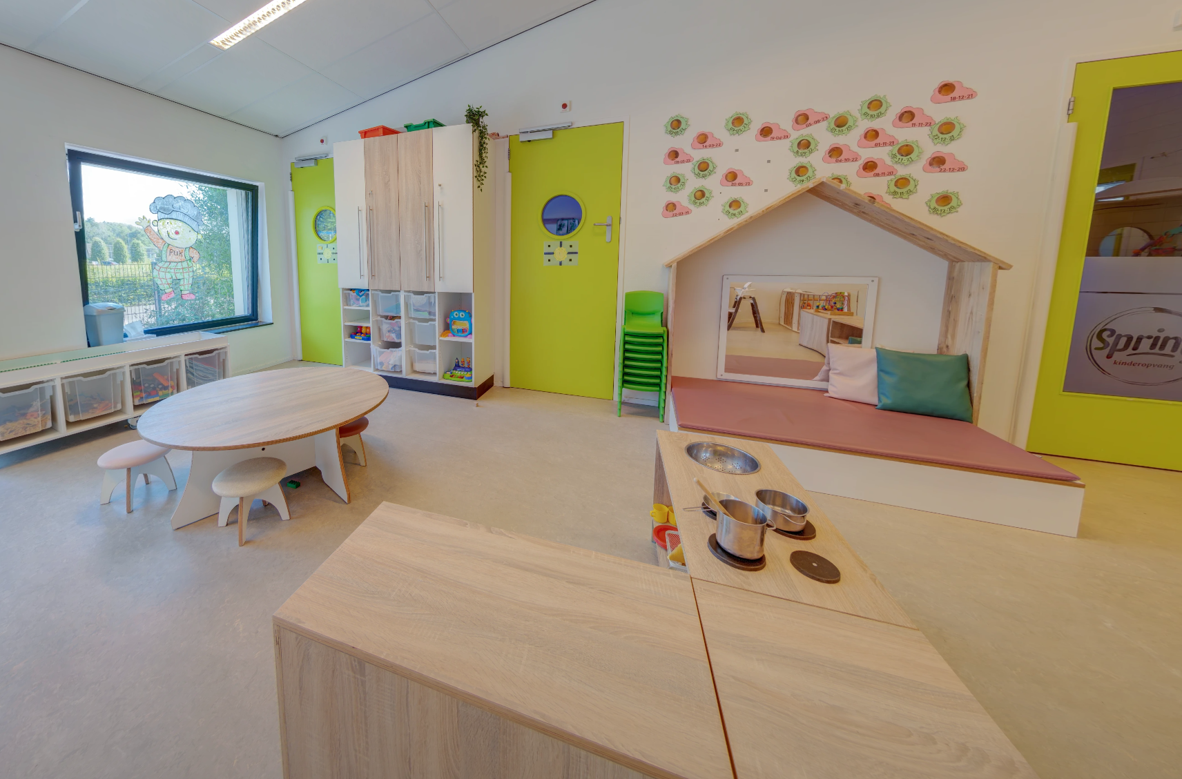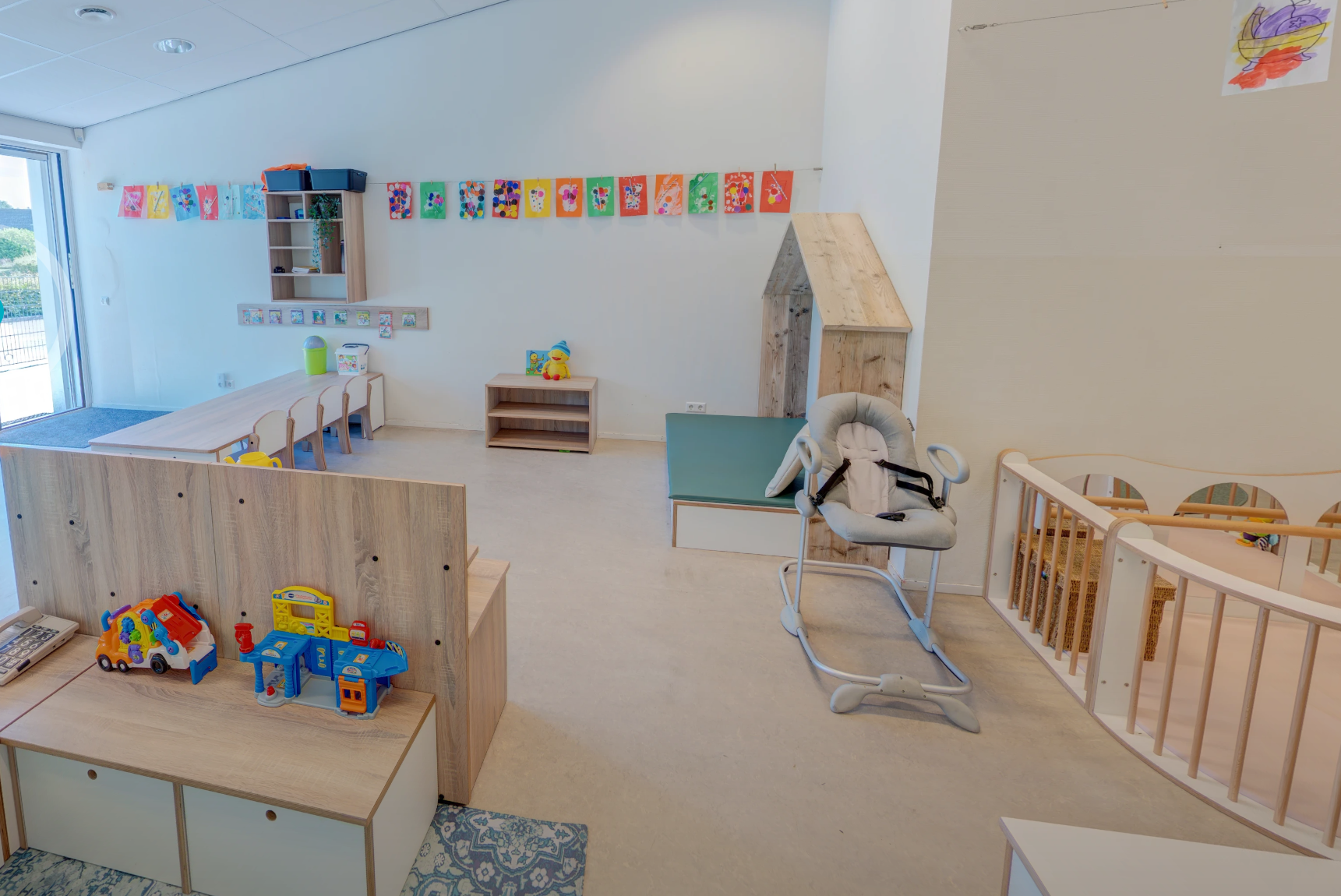 - Gezellige groepsruimtes met een babyhoek, speelkeukentje en veel speelmateriaal.