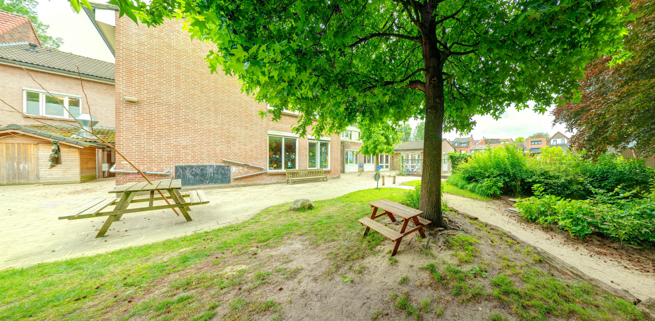 - Een overzichtelijke en volledig afgeschermde buitenspeelplaats.