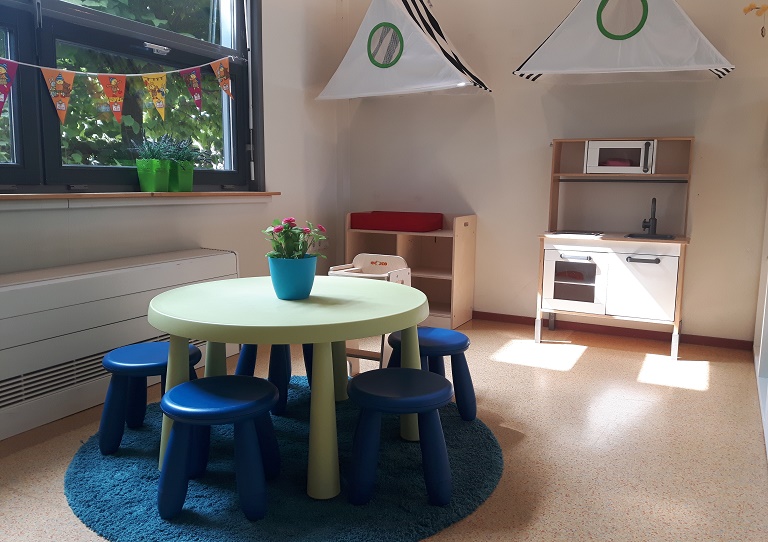 • Gezellige groepsruimte met verschillende speelhoeken én een speelhal. Ook maken we gebruik van de speelzaal van school.