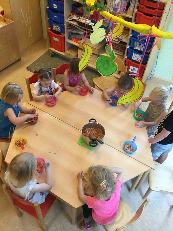 - Veel verschillende (en wisselende!) speelhoeken op de groep, zoals: bouwhoek, leeshoek, speelkeukentje, ballenbak, speelhuisje of een winkeltje.
