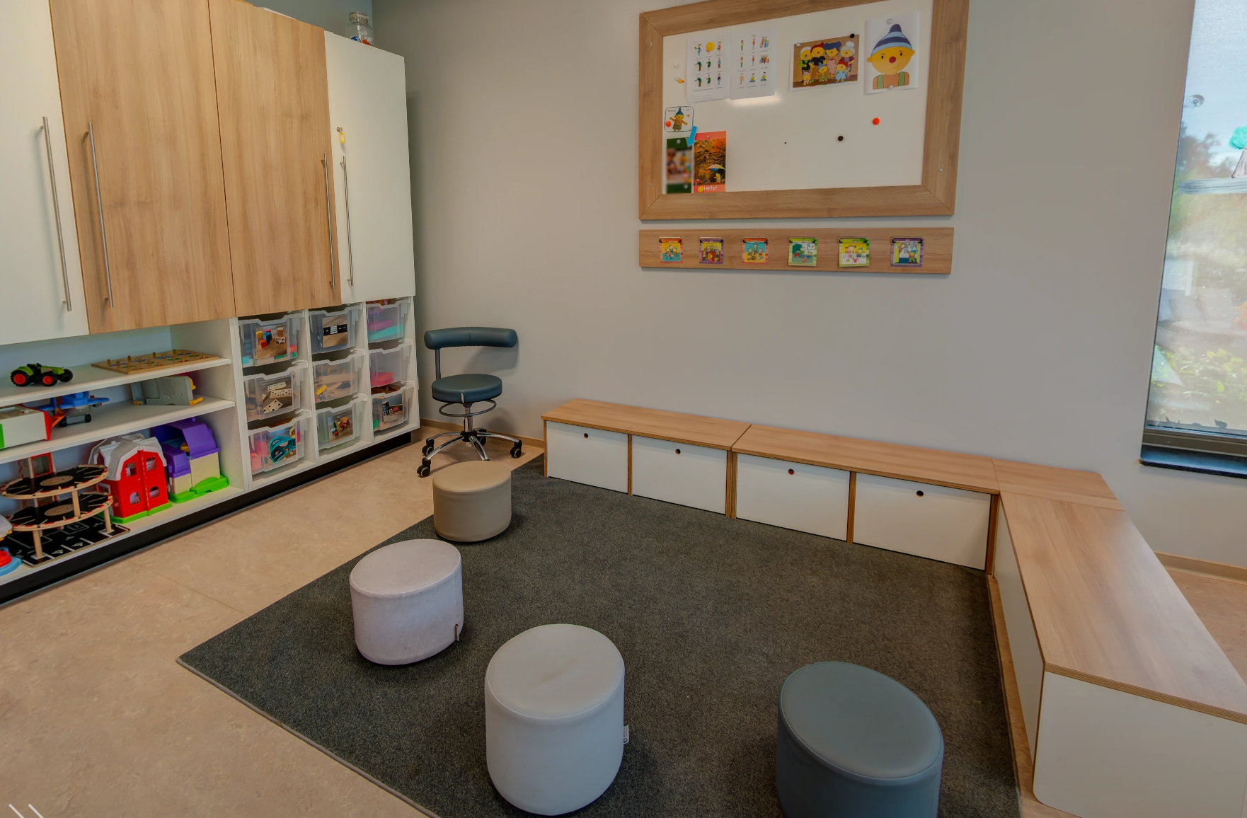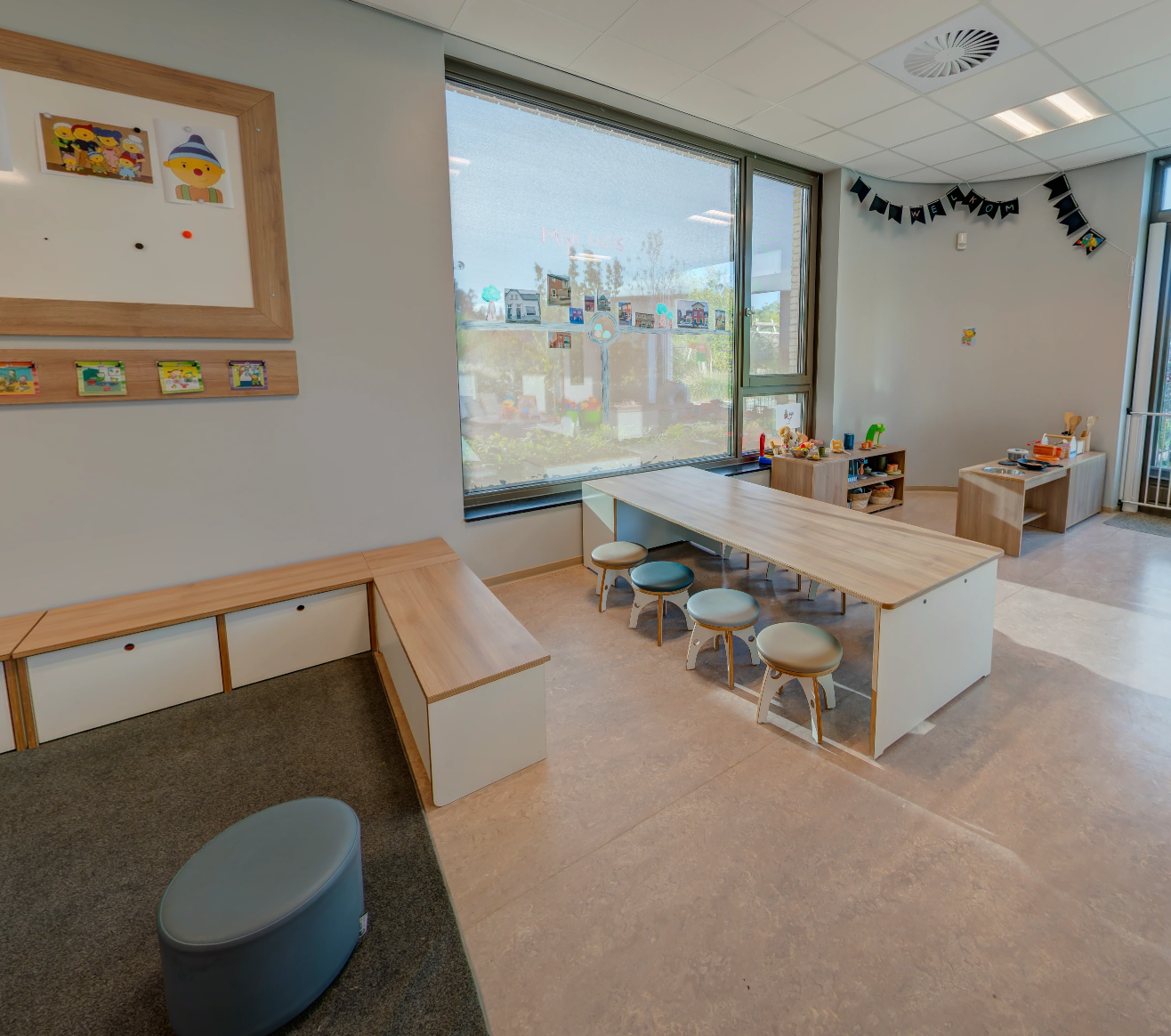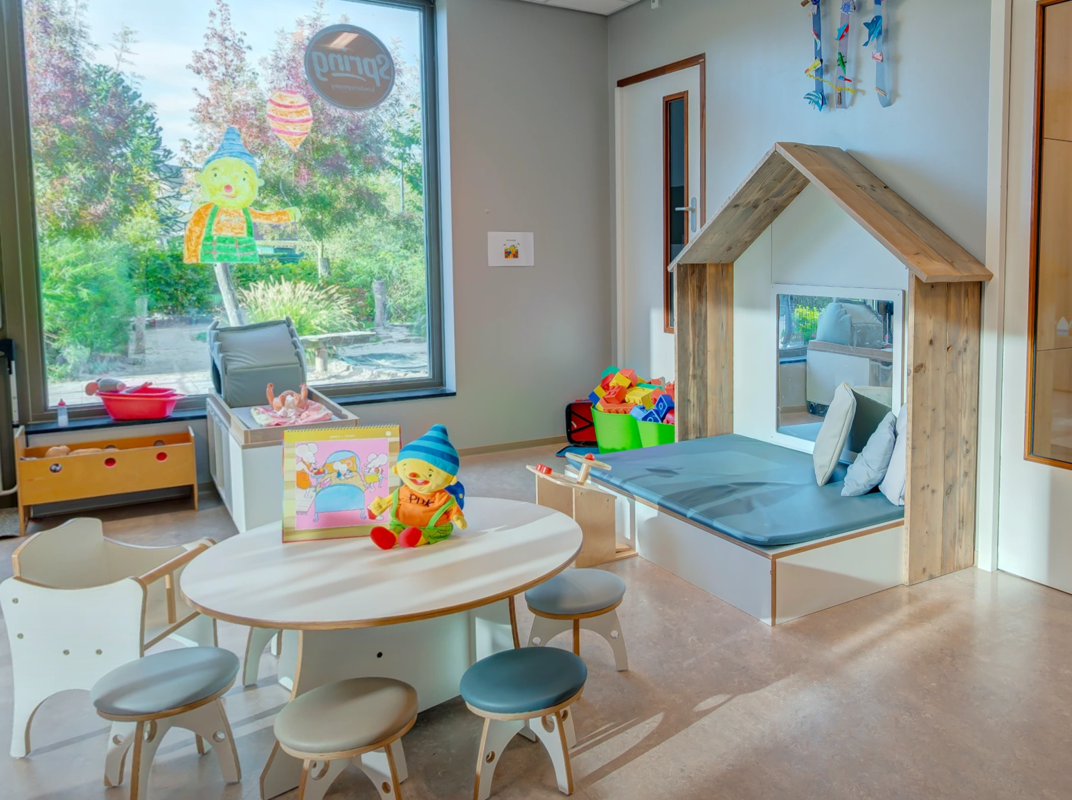 - Gezellige groepsruimte met verschillende speelhoeken.