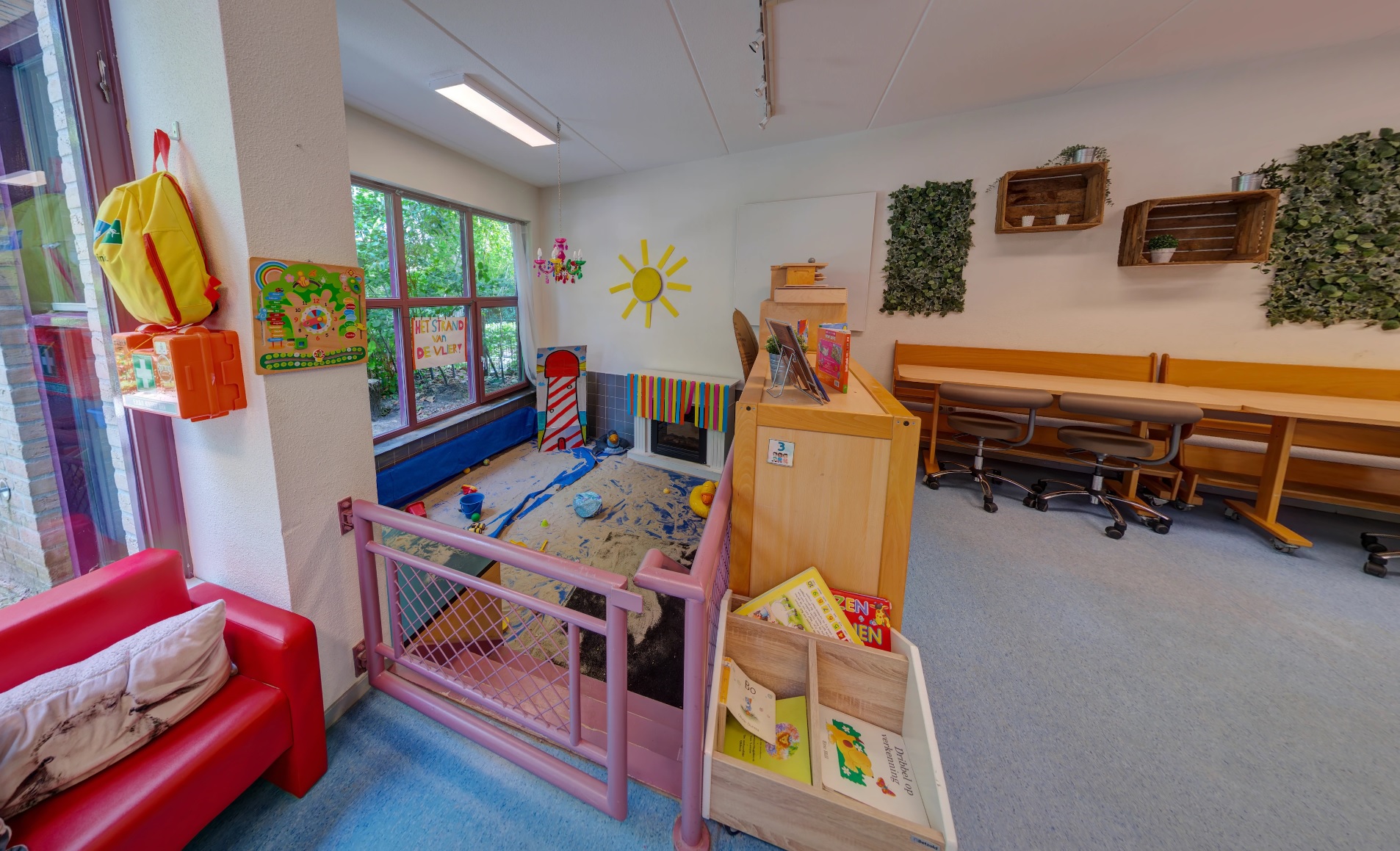 - Gezellige groepsruimte met verschillende speelhoeken.