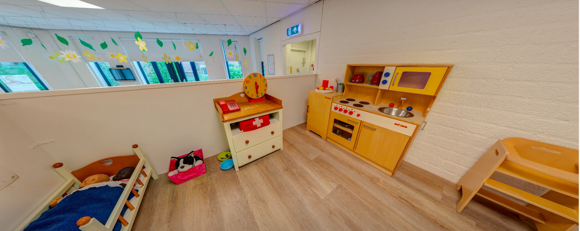 • De groepsruimte heeft verschillende speelhoeken.