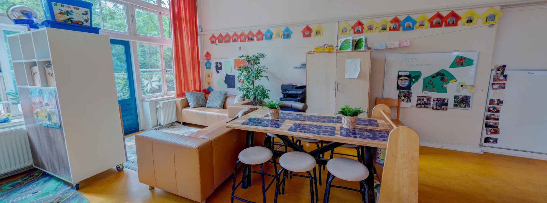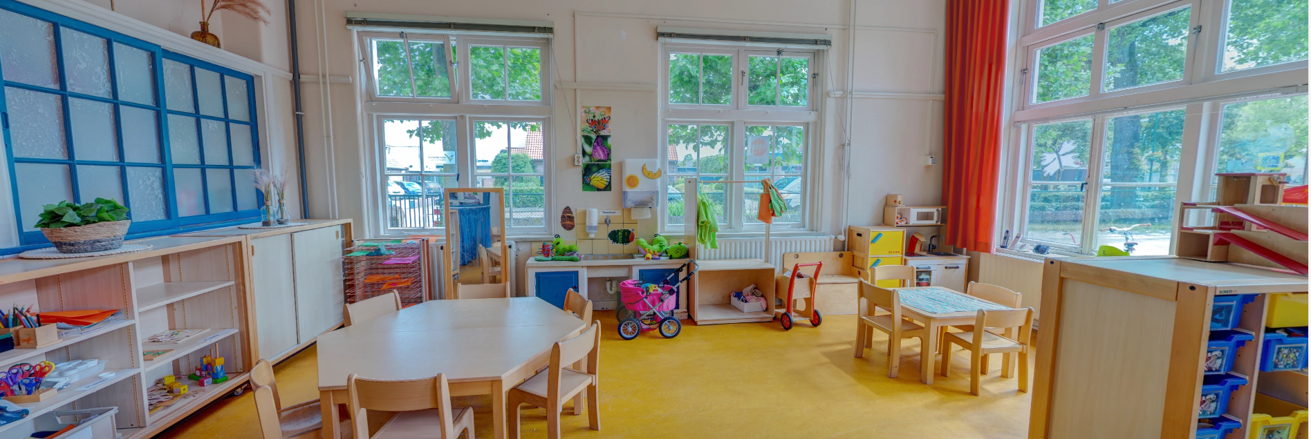 - Gezellige groepsruimte met verschillende speelhoeken en een ruime, rustige leeshoek.